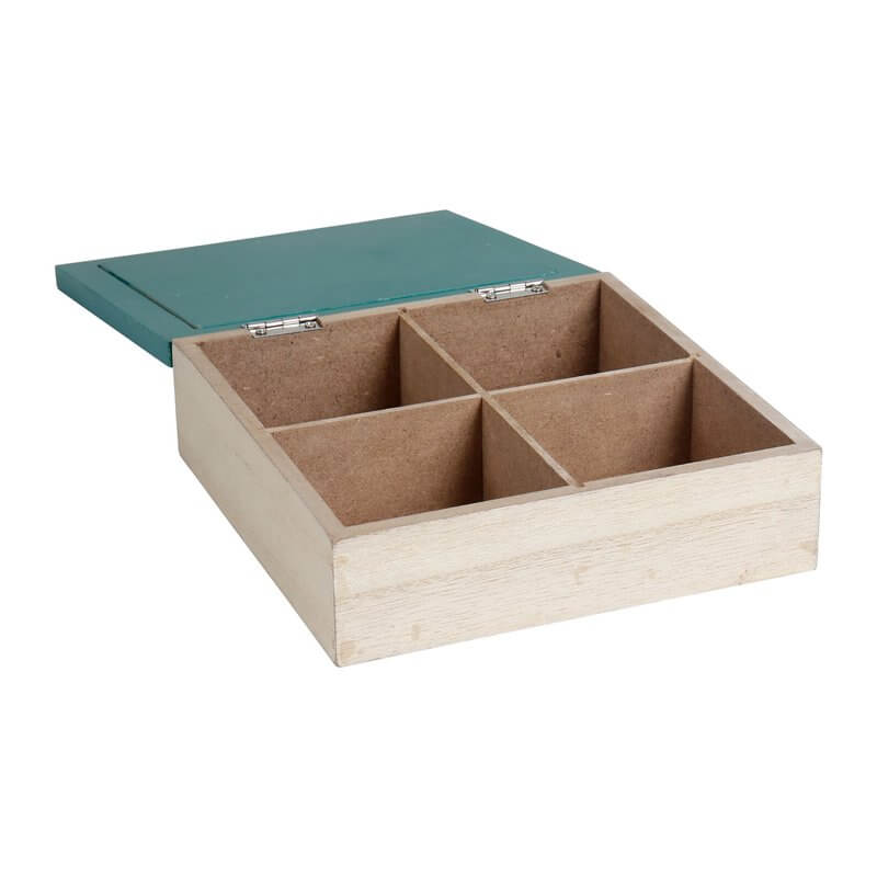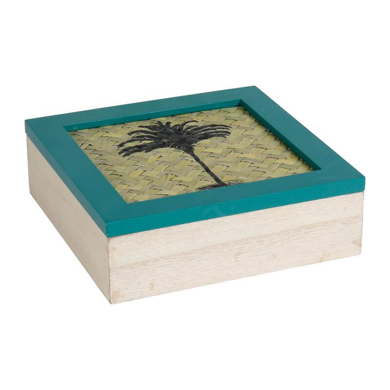 Κουτί ξύλινο, με 4 χωρίσματα, διακοσμημένο με φοίνηκα.