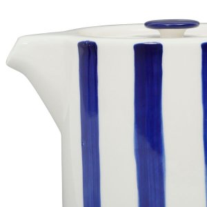 Τσαγιέρα με φίλτρο κεραμεική, σχέδιο ριγέ μπλε λευκό.