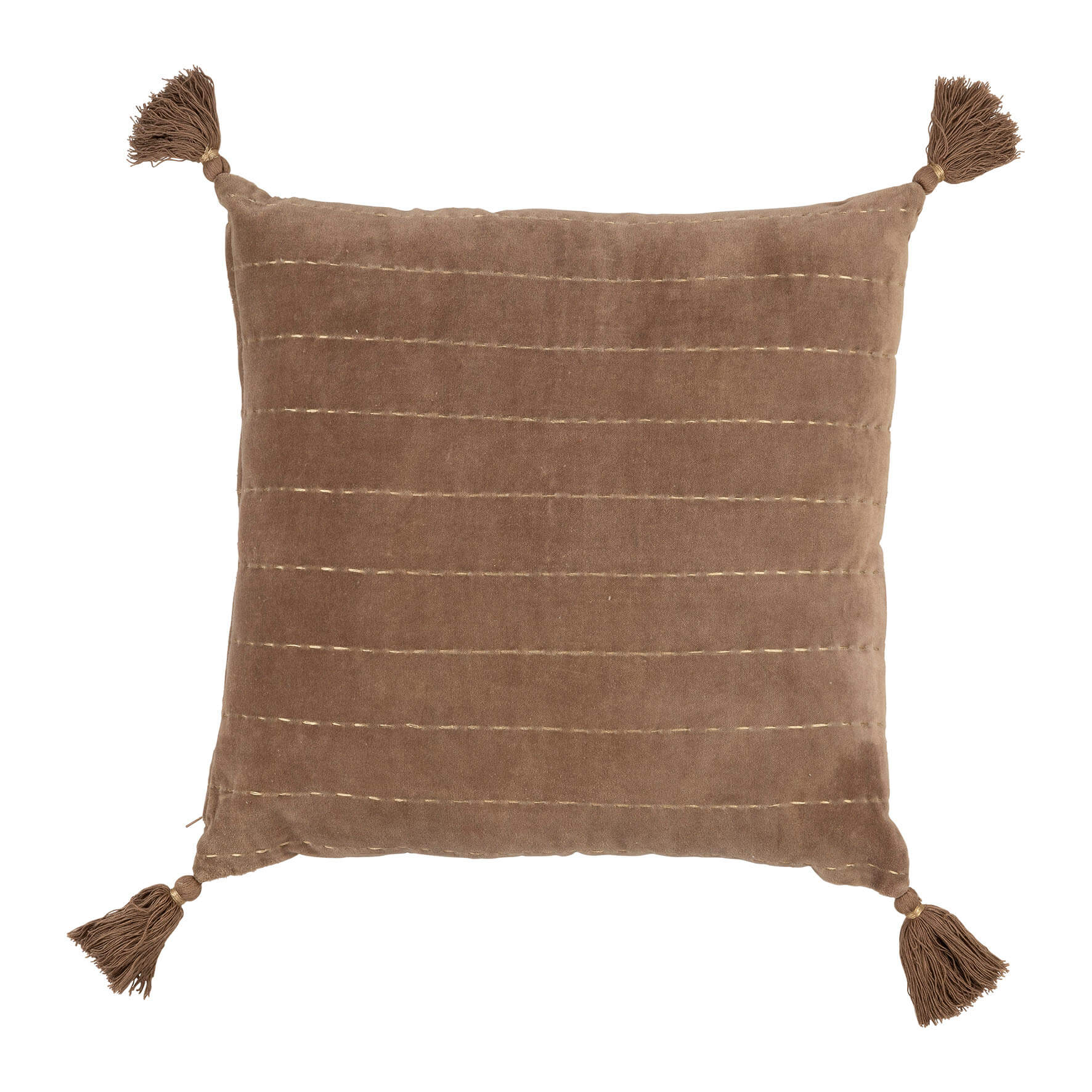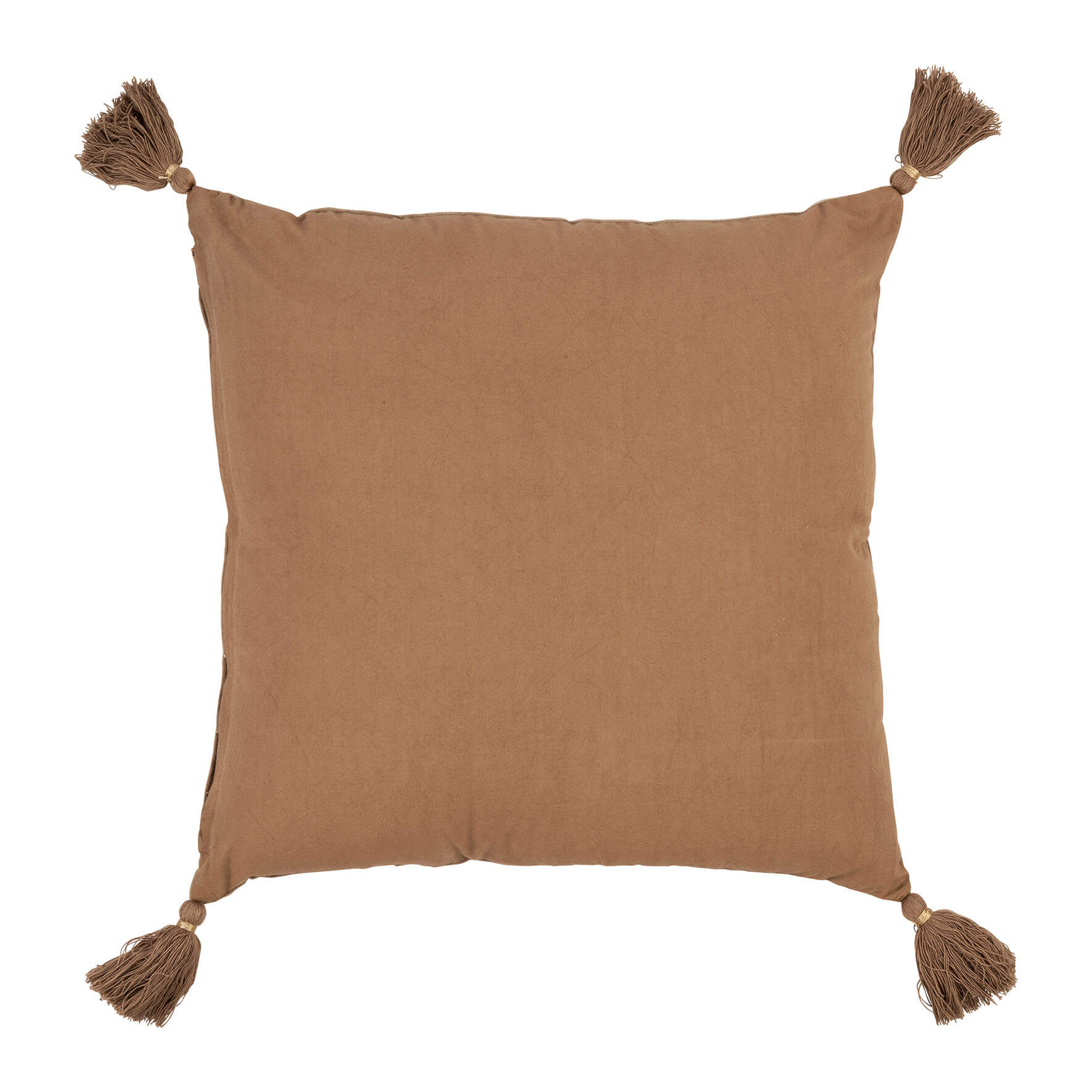Μαξιλάρι σαλονιού κάλυμμα, βελούδο κεντημένο σε χρώμα ταμπά και 4 φουντάκια στις γωνίες..